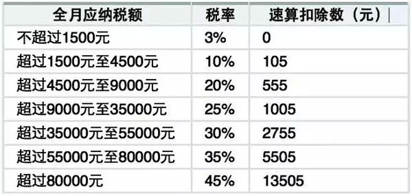4、稅率:由 3% 上漲到 45%,有 7 個等級,分別與 7 個不同區(qū)間的應(yīng)納稅額對應(yīng)
