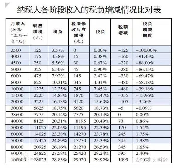 ▲2011 年個稅改革納稅人各階段收入稅負(fù)增減比對表(枕頭財經(jīng))
